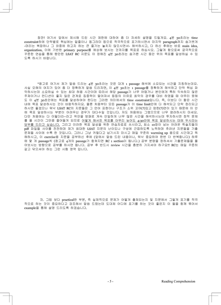 📍 LSAT RC 기출 문제를 시험 모드로 풀었고, 시간 내에 다 풀지 못하는 문제 수가 5개 이상인 분.